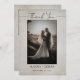 Capture seu dia especial com nosso cartões de agradecimentos de casamento personalizado, com fotos frontais e traseiras do casal casado com um filtro de nevoeiro fotográfico para um efeito sonhador. O fundo angustiado e a tipografia moderna oferecem um olhar chique e contemporâneo. Personalize a frente com seus nomes e data de casamento, e adicione uma frase sincera "até que a morte nos separe" nas costas. Este cartões de agradecimentos elegante é perfeito para expressar gratidão aos seus convidados e criar uma lembrança duradoura de sua celebração. Certifique-se de verificar o resto desta coleção de design para atender a todas as suas necessidades de papel de carta de casamento.
