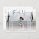 A letra azul do cartões de agradecimentos de fotos de casamento do guião moderno, da noiva e do noivo, para presentes de casamento. Mensagem personalizada incluída.