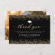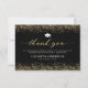 Graduação elegante, obrigado cartas com um fundo na moda preto que pode ser mudado para qualquer cor, brilho dourado, foto do formando, as palavras "obrigado você" em uma letra na moda, uma nota de agradecimento, e o nome e a escola que frequentaram.