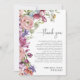 Cartões de agradecimentos de Foto para Graduação Floral Elegante. Mostre gratidão com elegância usando este cartão de obrigado-você maravilhosamente desenhado, florescendo com um buquê lateral de florais pintados manualmente em tons de roxo, magenta, arrojada, rosa pincelado, azul empoeirado e verde-salva exuberante. A parte de trás apresenta espaço para uma colagem de três fotos, perfeita para capturar memórias e expressar apreciação. Personalize facilmente as fontes, o texto e os fundos para se adequarem ao seu estilo. Celebre a sua conquista e partilhe a sua gratidão com um na moda e sincero!