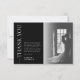 Mande aos seus convidados um cartões de agradecimentos fotográfico com este moderno minimalista cartões de agradecimentos vertical de dois lados. Em preto clássico e branco. 💫 Personalizar para se adequar ao seu estilo e mensagem, simplesmente clicando no botão "PERSONALIZAR" para começar a editar. 🌺 ✨ 🎨 precisa de um design? - As ordens personalizadas são sempre bem-vindas - somos apaixonados por criar momentos que refletem sua essência e tornam seus eventos realmente inesquecíveis. 📫 Clique no Botão de Contato abaixo! design vamos algo extraordinário juntos.
