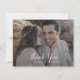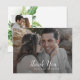 Este cartões de agradecimentos de palma tropical selvagem é perfeito para um casamento simples. A design apresenta um conjunto exótico de folhas de palmeiras de banana-d'água verde, samambaias, folhagem, plantas botânicas e verde para uma sensação tropical de verão. Personalize com duas fotos e seu sobrenome.