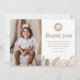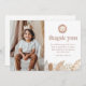 Este cartões de agradecimentos de aniversário apresenta um rosto de leão de aquarela doce com a frase "obrigado você", realçada por folhas de selva de tons neutros ao longo do fundo. Você pode adicionar sua própria foto do aniversariante ou da garota também. Perfeito por agradecer aos seus convidados por terem vindo à sua comemoração de segundo aniversário com o tema safari!