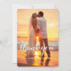 Simples Casamento de Fotos Obrigado Cartão Simples com Sobreposição de Script de Escrita Manual Branco em um design vertical. Elke Clarke © Envie sua obrigado de casamento, sua mensagem como recém-casados para seus amigos e família usando este obrigado elegante, memorável e simples, seu cartão plano fotográfico de casamento com as palavras "obrigado você" escrito em uma camada de texto de tipografia branca. Substitua facilmente a foto da amostra pela sua própria foto de casamento. Adicione o seu obrigado pessoal que você envia no verso ou deixe-o vazio e mande escrever sua mensagem pessoalmente. Outras cores disponíveis