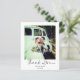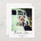 Este é um cartões de agradecimentos de casamento de fotos moderno e minimalista, amigável ao orçamento, impresso em uma folha de papel. O design usa uma foto de solteiro minimalista e um script manuscrito emparelhado com uma fonte de máquina de escrever. Altere facilmente as cores, o texto e a foto. O lado inverso inclui uma mensagem de obrigado que você pode personalizar ou remover completamente se preferir escrever a sua nota de agradecimento. Este design aplica um filtro à sua foto para uma ligeira sensação de vintagem. Você pode remover esse filtro clicando no botão azul e selecionando os filtros a serem editados. Entre em contato com o designer para obter informações relacionadas a este design.