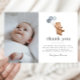 Um cartões de agradecimentos fotográfico com um urso doce segurando 3 balões azuis. Ideal por agradecer aos seus convidados por terem vindo à sua festa de primeiro aniversario! Você pode adicionar sua própria foto a esta design. Os balões são azuis, mas você também pode mudar a cor de cada um, se preferir. Você também pode alterar as letras 'ONE' ou apagá-las.