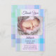Cartões de agradecimentos de bebê neutro em gêneros com uma fotografia do seu próprio bebê num fundo de xadrez pastel multicolor.