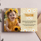 Nosso cartões de agradecimentos de fotos do primeiro aniversario Boho Light Daisy é a maneira perfeita de mostrar gratidão e apreço aos seus convidados por celebrarem com você. O design apresenta um layout festivo e colorido com espaço para uma mensagem personalizada ou uma nota "obrigado você". Eles são perfeitos para enviar depois da festa para expressar seu apreço aos seus convidados pela presença e presentes. Eles são adequados para qualquer tipo de festa de aniversário e fazem um aditamento a excelente para um acompanhamento da celebração de aniversário. Mostre aos seus hóspedes o quanto os aprecia com os nossos cartões de aniversário.