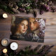 A design do cartão é enquadrada por uma borda fina e sutil, complementando o tema suave e romântico. A estética geral do cartão é gentil, elegante e profundamente pessoal, capturando um momento especial do dia do casamento do casal. A parte de trás do cartões de agradecimentos de casamento apresenta uma mensagem de gratidão sincera do casal. A design mantém o tema romântico e elegante de frente, com o texto sobrepondo uma versão ligeiramente escurecida e desfocada do mesmo retrato usado na frente, garantindo que a mensagem seja clara e legível. O texto é centrado e escrito em uma fonte formal, serif. Para mais personalização, clique no link "personalizar" e use a ferramenta design para modificar este modelo.