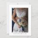 Um Casamento Obrigado cartão com fotos plano. A frente do cartão mostra os nomes dos casais e a data do casamento, adornada com um coração vermelho e as palavras - Obrigado! - em letra de escrita elegante. O verso apresenta uma breve nota aos amigos e à família que pode ser personalizada de acordo com o seu gosto. Além disso, o verso exibe uma paisagem aquática de montanhas e pinheiros. *Por favor, lembre-se de substituir a foto na frente do cartão pela sua foto de casamento no formato de retrato.