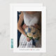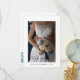 Um Casamento Obrigado cartão com fotos plano. A frente do cartão mostra os nomes dos casais e a data do casamento, adornada com um coração vermelho e as palavras - Obrigado! - em letra de escrita elegante. O verso apresenta uma breve nota aos amigos e à família que pode ser personalizada de acordo com o seu gosto. Além disso, o verso exibe uma paisagem aquática de montanhas e pinheiros. *Por favor, lembre-se de substituir a foto na frente do cartão pela sua foto de casamento no formato de retrato.