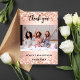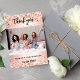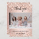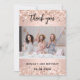 Um fundo rosa de gradiente dourado decorado com falso brilho, faíscas. Personalize e adicione sua foto e obrigado nota.