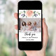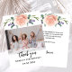 Um cartões de agradecimentos de aniversário moderno e elegante. Um fundo branco chic. Decorado com ouro rosa e rosas rosa-pinceladas, flores florais e lavanda. Letras pretas e ouros. Na frente do texto: Obrigado, nome e data. Back: Modelo para sua nota de agradecimento e seu nome.