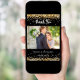 Um casamento moderno Obrigado, cartão com fotos. Um fundo preto decorado com confete de ouro falso. Personalize e adicione sua foto e obrigado nota.