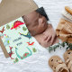 Cartões de agradecimentos de fotos do chá de fraldas do Dinossauro com dinos ilustrados bonitinhos à volta do texto Obrigado. Arte original de Caroline Bonne Müller