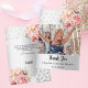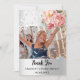 Um Chá de panela moderno Obrigado cartão com fotos. Um fundo com aspecto fino de prata decorado com rosas, flores e rendas cor-de-rosa. Personalize e adicione sua foto na frente e obrigado nota atrás.