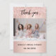Um Chá de panela moderno Obrigado cartão com fotos. Um fundo rosa de gradiente dourado decorado com pingos de brilho falsos, aparência de pingar tinta. Personalize e adicione sua foto e obrigado nota.