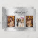 Adicione 3 das suas fotos de aniversário, tamanho vertical, uma data, nome e a nota de agradecimento. Um fundo com aspecto sujo de prata e brilho sujo, brilhos. Texto e quadro pretos. O texto: Obrigado na frente e seu nome no verso é escrito com um script com na moda.