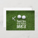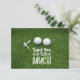 Um cartões de agradecimentos de golfe com bola de golfe em verde é uma maneira séria de mostrar sua apreciação a um golfista. Seja para um sócio de negócios, membro da família ou amigo, um cartões de agradecimentos de golfe é uma maneira única de dizer obrigado. Ofertas para treinador, instrutor, professor, amigos, mãe, pai, namorada/namorado, colega de trabalho, anfitrião, vizinho, ele/ela, casais, avós, chefe, filhos, melhor amigo, família, sogros, esquadrão, equipe,