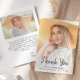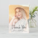 Obrigado de graduação moderna - sua placa com uma foto vertical personalizada na frente e uma foto horizontal no verso. As palavras "Obrigado" aparecem na escrita de cinzas de carvão negro, com o seu nome e ano de graduação em sans serif. Personalize o lado inverso com uma mensagem de sua escolha em cinzas sans serif e adicione sua linha de assinatura no script de escrita manual. Substitua facilmente as imagens de exemplo por suas próprias fotos. Uma tela de gradiente branco ajuda a garantir o texto na parte frontal das pop da placa. Ideal para segundo grau ou formandos.