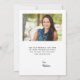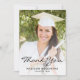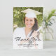 Cartões de agradecimentos de graduação moderno com uma foto vertical personalizada na frente e uma foto horizontal no verso. As palavras "Obrigado" aparecem na escrita a preto, com o seu nome e ano de graduação em sans serif font. Personalize o reverso com uma mensagem de sua escolha em sans serif preto e adicione sua linha de assinatura em letra decorativa de escrita manual. Substitua facilmente as imagens de exemplo por suas próprias fotos. Uma tela de gradiente branco ajuda a garantir o texto na parte frontal das pop da placa. Ideal para segundo grau ou formandos.