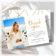 Procurando a maneira perfeita de dizer obrigado aos seus amigos e familiares que celebraram sua formatura com você? Olhe só nossa festa de formatura maravilhosa, obrigado, cartas! Apresentando uma bela foto do formando e as palavras "obrigado você" em uma elegante brilha de ouro sobre um fundo branco pristine, essas cartas certamente dão uma impressão duradoura. E com um padrão geométrico moderno em ouro e branco ao contrário, eles são a mistura perfeita do estilo clássico e contemporâneo. Mas isso não é tudo - essas cartas também são incrivelmente fáceis de personalizar! Basta adicionar sua própria mensagem de obrigados, e você está pronto para enviá-los para todos os seus entes queridos. Quer você esteja agradecendo a eles pelo apoio durante toda sua jornada acadêmica ou simplesmente pelo fazer do seu dia de formatura extra especial, estas cartas são a maneira perfeita de expressar sua gratidão em estilo.