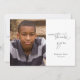 Esse cartões de agradecimentos de graduação minimalista apresenta uma grande foto e um simples design preto e branco. "Obrigado" está escrito em moderno roteiro manuscrito, com o nome do formando e o ano de graduação abaixo. À esquerda, adicione uma grande foto do novo formando. A parte de trás é vazio e pode acomodar fotos adicionais ou uma nota personalizada para destinatários.
