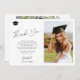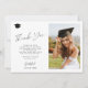 Modelo de cartões de agradecimentos de de de graduação personalizada de script elegante minimalista com 2 fotos de formando, sua mensagem de texto personalizada e assinatura.
