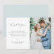 Um cartões de agradecimentos de casamento simples moderno com uma maravilhosa carta negra e uma foto personalizada da noiva e do noivo. Adicione um obrigado pessoal que você envia aos seus convidados.