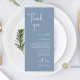Este é o Place Setting Obrigado Cards, em moderno roteiro romântico clássico, em empoeirado tema azul. Compartilhe o amor e mostre seu apreço aos seus convidados, quando eles sentarem em seu assento e lerem esse obrigado encantador personalizado que você coloca com o cartão de ajuste. É uma maneira maravilhosa de acabar com a sua celebração especial de dia! Visite nosso site para mais designs e inspiração: www.zazzle.com/teeshaderrick