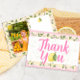 Envie obrigados ensolarados com este charmoso cartões de agradecimentos rosa e amarelo de limão. Apresenta um ousado "Obrigado" com as bordas florais dos citros e foto opcional no verso. Perfeito para aniversários, bancas de limonada e festas de verão!