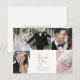Este cartões de agradecimentos rosa ouro 4 de modelo de foto é perfeito para um casamento simples. A design romântica moderna apresenta clássico de ouro rosa e tipografia branca emparelhada com uma caligrafia rustica, mas elegante, com estilo antigo, com letra de mão. Personalizável em qualquer cor. Mantenha o design simples e elegante, como está, ou personalize-o adicionando seus próprios gráficos e trabalhos de arte. Personalize a parte traseira do cartão com seus nomes e uma mensagem de obrigado. Como alternativa, deixe o vazio da seção modelo da mensagem do obrigado para escrever uma nota personalizada em cada cartão após a sua chegada. Essas cartas podem ser usadas para um casamento, chá de panela ou qualquer evento especial.