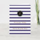 Um cartão com linhas azuis, faixas colocadas sobre a superfície branca com círculo pontiagudo personalizado a preto. Ele é personalizado com seu nome e nome iniciais. Há muitas cartas riscadas de agradecimento em outras cores também no mesmo estilo.