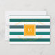 Blues de chá elegantes e cartões de agradecimentos de monograma e café da manhã com distribuição branca. Você está dirigindo um pequeno restaurante de cama e café da manhã ou pensando sobre isso? Este elegante e clássico design striped em vários azuis lacrimogêneos e branco com sotaques laranja ajudará você a marca sua aventura com cores brilhantes e alegres. Adicione seu monograma e nome do seu lugar para torná-lo exclusivamente seu. Você também pode alterar a fonte, o tamanho da fonte, a cor e o plano de fundo.