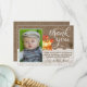 Abóbora e outono Folhas decoram este cartões de agradecimentos de burlap e efeito de renda para um Batismo, Christening ou 1rua Communion, etc. Adicione sua própria foto no menu de personalização acima clicando para alterar a foto. Então personalize o texto e você é bom para ir!