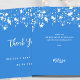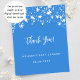 Um cartões de agradecimentos para um Chá de fraldas. Uma cor azul brilhante de fundo. Decorado com estrelas brancas. Voltar: Personalize e adicione seu nome e nota de agradecimento. 1 folha = 1 cartões de agradecimentos impresso borda a borda.