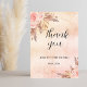 Um fundo rosa dourado e gradiente de esmagamento. Esfregue florais e pampas. Personalize e adicione nome e uma data na frente. Obrigado por ser escrito com uma fonte de estilo escrita à mão. Voltar: Obrigado nota e nome, assinatura.