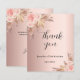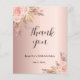 Um fundo de gradiente rosa ouro. Esfregue florais e pampas. Personalize e adicione nome e uma data na frente. Obrigado por ser escrito com uma fonte de estilo escrita à mão. Voltar: Obrigado nota e nome, assinatura.