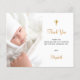 Um cartões de agradecimentos de batismo minimalista de ouro branco e falso. Personalize e adicione sua foto da criança, obrigado nota e nome. Sexo neutro.
