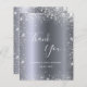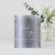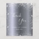 Um cartões de agradecimentos para um aniversário de 50 anos (ou qualquer idade). Uma cor de fundo metálica de aparência fina prateada. Com poeira falsa. À frente, um grande texto escrito à mão e o texto: Obrigado, seu texto, título e uma data. Voltar: personalize e adicione seu nome e nota de agradecimento.