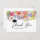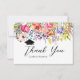 Cartões de agradecimentos de Primavera de flor selvagem colorida. Este design apresenta um arranjo de flores aquarelas em tons de rosa e roxo, amarelo em verde-jardim rústico.