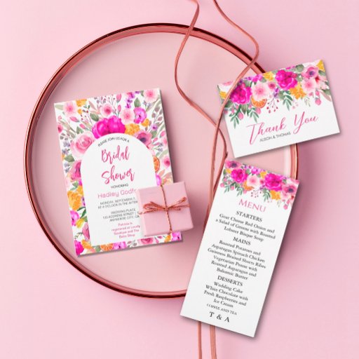 Cartões de agradecimentos de Primavera de flor selvagem colorida. Esta design apresenta um arranjo de flores aquarelas em tons de rosa e branco em verde-jardim rústico.