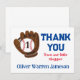 Cartões de agradecimentos de beisebol de um garoto divertido: primeiro aniversario. Luva marrom com um beisebol vermelho e branco (adicione o dentro da idade do seu filho à bola). Tipografia desportiva. Ideal para Chá de fraldas Menino, Primeiro Aniversário do Menino.