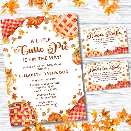 O chá de fraldas "A Little Cutie Pie", com temas de outono neutros de gênero, está a caminho, com ilustrações de cor d'água de tortas, abóboras, folhas de outono e guardanapos de xadrez.