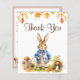 O coelho Peter cai no cartões de agradecimentos de modelo chá de fraldas, um coelho fofo numa jaqueta azul com cogumelos e folhas de outono, bom para as funções do outono.