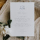 Verde botânico elegante crista de monograma vintage em azul poeirento, cartões de agradecimentos recepção de casamento.