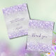 Um cartões de agradecimentos de aniversário feminino e elegante. Uma cor falsa de fundo com aspecto prateado. Com poeira brilhante violeta e roxa. Na frente, o texto escrito em letras grandes e o texto: Obrigado. Voltar: Personalize e adicione seu nome e nota de agradecimento. O nome é escrito com um moderno estilo escrito à mão com traços. Para manter as hastes, exclua apenas o nome da amostra, deixe os espaços ou emoji na frente e depois do nome.