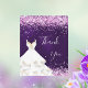 Um cartões de agradecimentos de aniversário feminino e elegante. Uma cor de fundo roxa e incolor. Com brilho de falso rosa, faíscas e um tambor branco. À frente, um grande texto escrito à mão e o texto: Obrigado. Voltar: Personalize e adicione seu nome e nota de agradecimento. O nome é escrito com um moderno estilo escrito à mão.