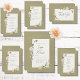 Este belo design delicado é elegante mas simples. Ele apresenta uma delicada estrutura dupla com flores de bolo secas em uma pincel macia, creme, bronzeada e verdes com uma faixa verde ao redor. O fundo é um verde de sábio elogioso. Esta design faz parte da coleção do pacote de casamento verde da Frame Floral Seca Boho criada pela Imprensa Simplesmente Farmhouse.