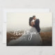Um excelente e uma maneira séria de obrigado aos seus amigos, família e colegas de trabalho que te agarraram com sua presença no dia do seu casamento com esta foto moderna minimalista, obrigado cartas com roteiro escrito "obrigado você" e um coração de amor.